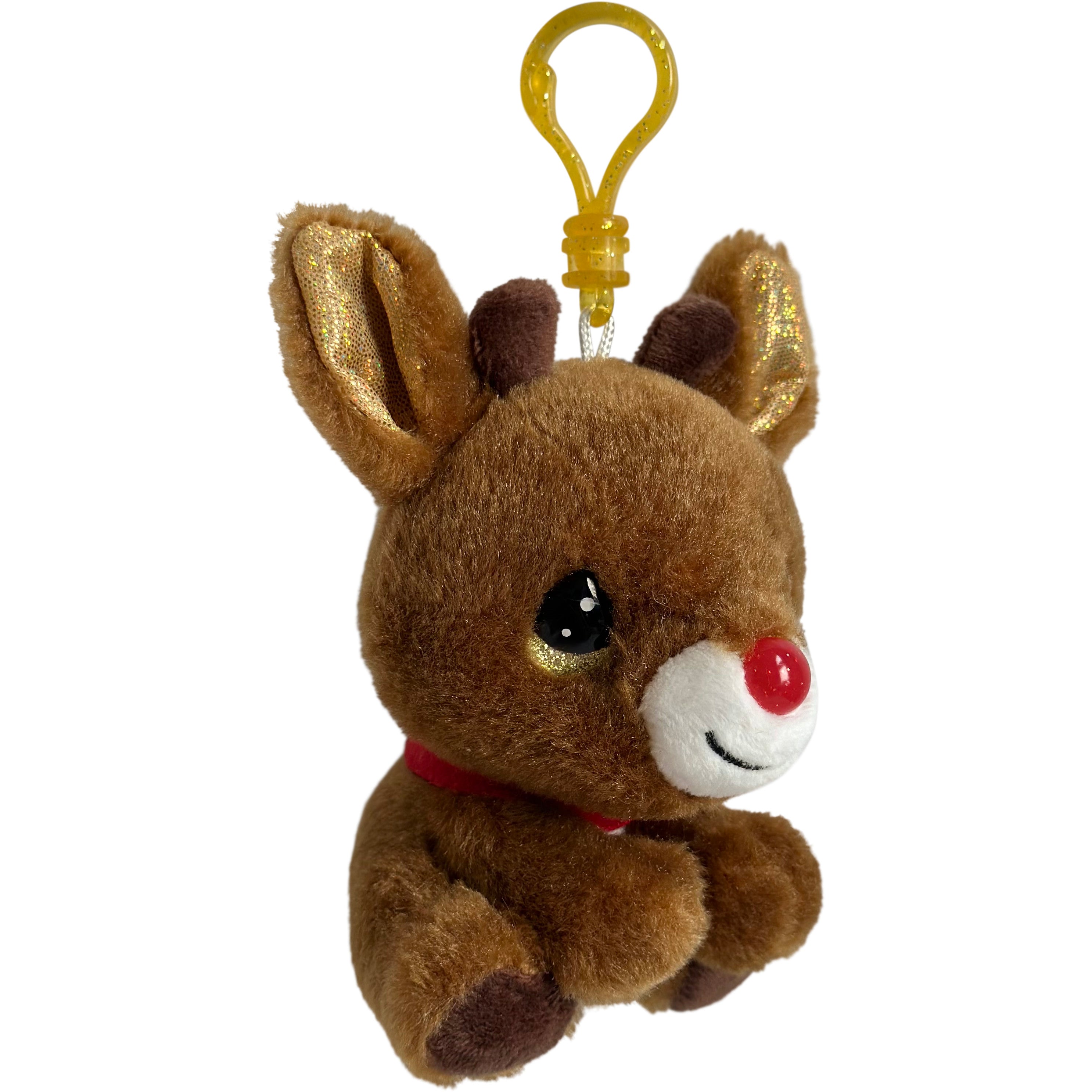 Give a cute and cuddly gift to someone who loves Rudolph the Red-Nosed Reindeer – a Rudolph backpack clip! Rudolph brightens the season with his shiny red nose that happens to match his cozy scarf. He is ready to tag along on every holiday adventure. Sturdy plastic clip attaches to stockings, presents, backpacks, purses, lunch bags, or beltloops. Makes a thoughtful gift to tuck into stockings and is also great for winter birthdays, or Christmas party favors or prizes. Measures 4” H and is carefully crafted of all new materials – polyester fibers and fill. Recommended for ages 3 and up.